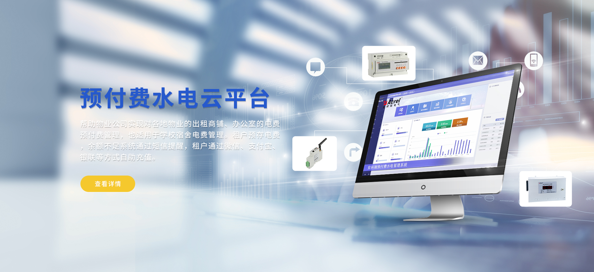 安科瑞提供的解決方案包括Acrel-EIoT能源物聯(lián)網(wǎng)云平臺、變電所運維云平臺、安全用電管理云平臺、環(huán)保用電監(jiān)管云平臺、智慧消防云平臺、能源管理云平臺、工業(yè)企業(yè)能源管控平臺、遠程預(yù)付費云平臺餐飲油煙監(jiān)管云平臺、電動汽車/電瓶車充電樁收費管理云平臺、電力監(jiān)控/無線測溫系統(tǒng)、電能質(zhì)量治理系統(tǒng)、電氣火災(zāi)監(jiān)控系統(tǒng)、消防設(shè)備電源監(jiān)控系統(tǒng)、防火門監(jiān)控系統(tǒng)應(yīng)急照明和疏散指示系統(tǒng)、智能照明控制系統(tǒng)、醫(yī)用隔離電源絕緣監(jiān)測系統(tǒng)等,幫助用戶實現(xiàn)能源智能化、可視化、精細化管理,提高用能效率和用能安全,為企業(yè)節(jié)能降耗和實現(xiàn)能源數(shù)字化建設(shè)提供數(shù)據(jù)服務(wù)。